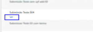 Para verificar se o seu envio foi corretamente aceito pelo sistema, você poderá visualizar a sua submissão, assim como os arquivos enviados ao passar o mouse sobre o título da sua submissão e clicando na opção “Ver”: